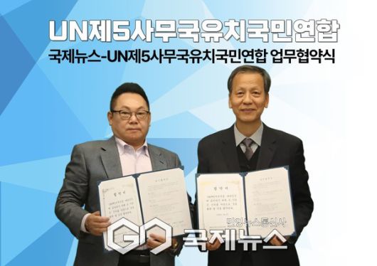 (서울=국제뉴스) 최정범 기자 = UN 제5사무국유치 국민연합과 국제뉴스 서울본부는 7일 국제뉴스 서울본부 대회의실에서 UN 제5사무국 대한민국유치와 관련 국제기구를 설립할 수 있도록 노력하는데 협력하는 업무 협약식을 진행했다.