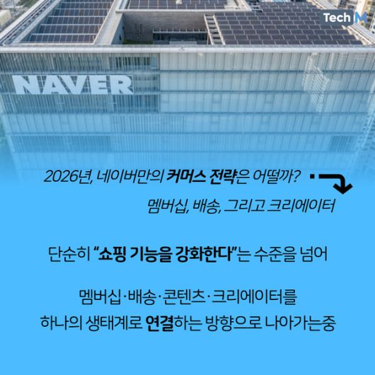 [이아령 에디터] 네이버가 2026년에는 커머스 전략을 전면적으로 업그레이드할 예정이다. 단순히 "싸게 파는 쇼핑 플랫폼"을 넘어서, 멤버십·배송·콘텐츠·크리에이터를 하나의 생태계로 묶는 방향이 눈에 띈다.