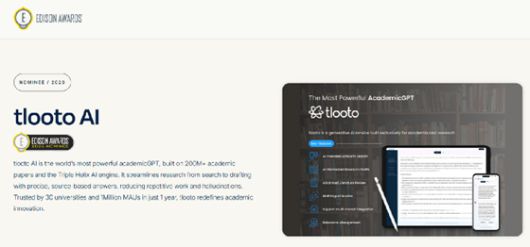 틀루토 관계자는 "이번 후보 선정은 틀루토가 연구자들에게 단순한 도구를 넘어 '신뢰할 수 있는 연구 파트너'로 자리 잡았음을 보여주는 것"이라며 "앞으로도 연구자가 불필요한 탐색 과정 없이 오직 연구에만 집중할 수 있는 환경을 조성하겠다"고 했다.