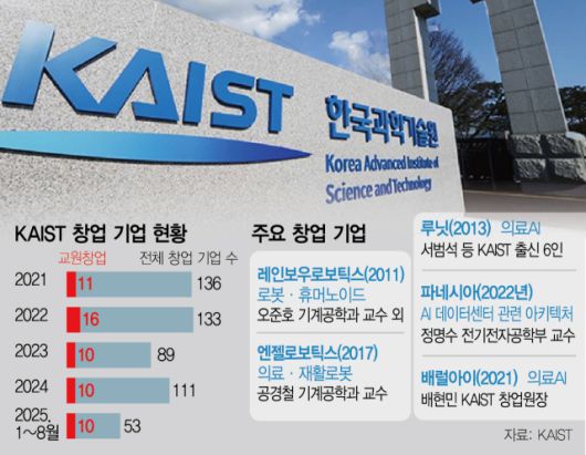 7일 KAIST에 따르면 2021년부터 2025년 8월까지 교원·재학생·동문이 창업한 기업 수는 총 522곳에 달한다. 이 가운데 22곳은 이미 국내 증시에 상장했으며 KAIST 창업 기업들이 창출한 누적 기업가치는 10조 원을 넘어선 것으로 집계됐다. 단순한 창업 숫자를 넘어 과학기술 기반 기업들이 실질적인 산업 가치로 이어지고 있다는 점에서 의미가 크다는 분석이 나온다.