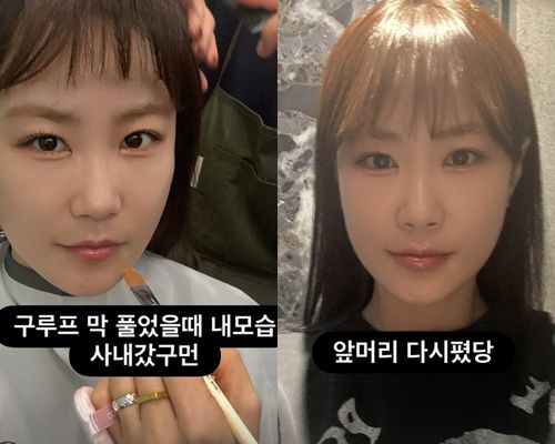 김지민은 “구르프 막 풀었을 때 내 모습 사내 같구먼”, “앞머리 다시 폈당”이라는 재치 있는 멘트를 덧붙이며 특유의 유머 감각도 놓치지 않았다. 앞머리를 정리한 후에는 또렷한 이목구비와 한층 어려진 동안 미모가 돋보이며 분위기가 확 달라졌다.