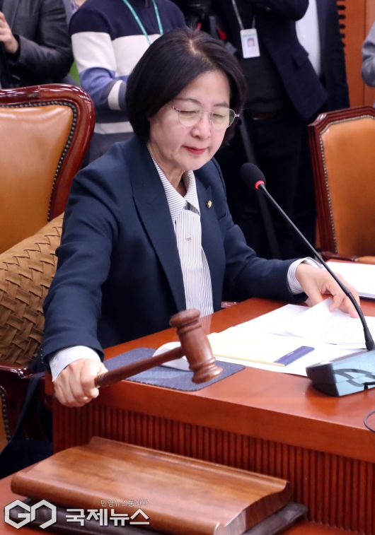 (서울=국제뉴스) 추미애 국회 법제사법위원장이 7일 오후 서울 여의도 국회 법사위 전체회의에서 2차 종합특검법안 등의 안건조정위원회 회부로 인한 정회를 선포하고 있다./사진=이용우 기자