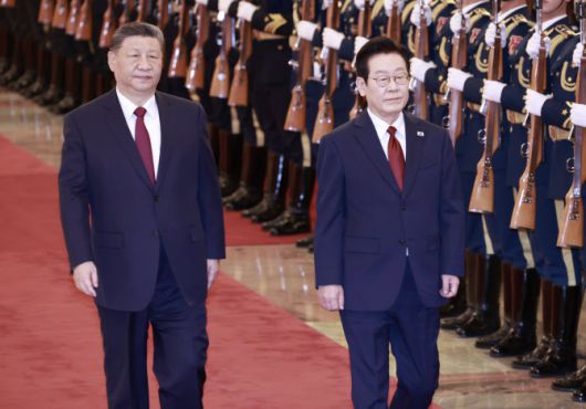 이재명 대통령과 시진핑 중국 국가주석이 지난 5일 베이징 인민대회당에서 열린 이 대통령 공식환영식에서 의장대를 사열하고 있다. (사진=연합뉴스) |