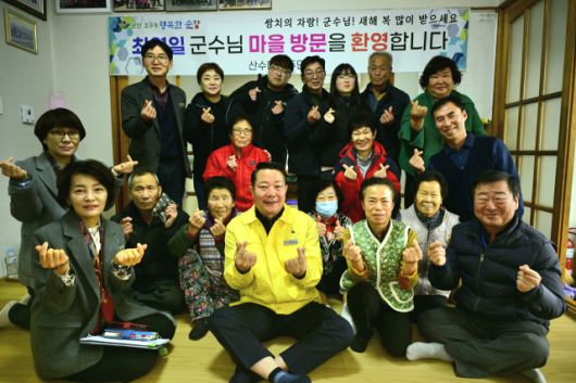 ▲최영일 순창군수가 쌍치면 산수마을 주민들과 기념촬영을 하고 있다. ⓒ순창군 |
