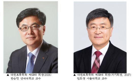 (왼) 한승헌 연세대학교 교수(대한토목학회 제58대 회장) (오)김호경 서울대학교 교수(제59대 회장) [자료=대한토목학회] |