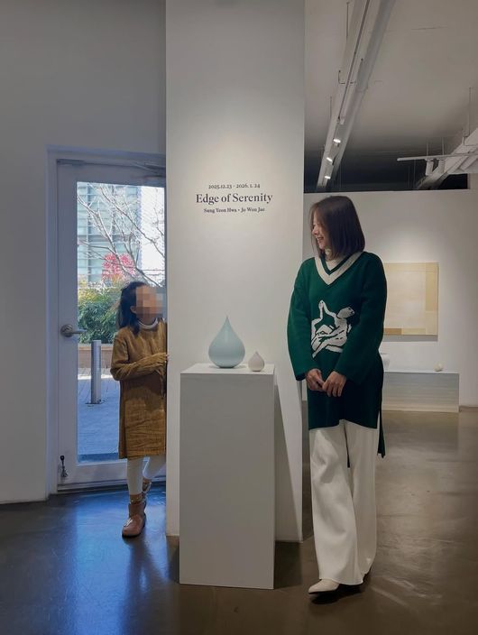 사진에서 조윤희는 딸과 함께 전시회를 방문했다. 조윤희가 관람한 전시회는 조원재와 성연화의 2인전으로, 두 작가가 시간과 기억, 감정의 층위를 각기 다른 조형 언어로 풀어내며 한지와 도자기라는 재료를 통해 흐름과 고요가 맞닿는 경계, 평온이 드러나는 순간을 탐구한다.