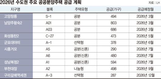 이재명 정부가 공공주택 공급 확대를 통한 주거 안정을 핵심 과제로 제시한 가운데, 한국토지주택공사(LH)가 올해 대규모 공공분양 물량을 시장에 내놓는다. 민간 분양 위축과 공급 공백 우려가 이어지는 상황에서 공공이 직접 물량을 공급하며 실수요자 체감도를 끌어올린다는 구상이다.