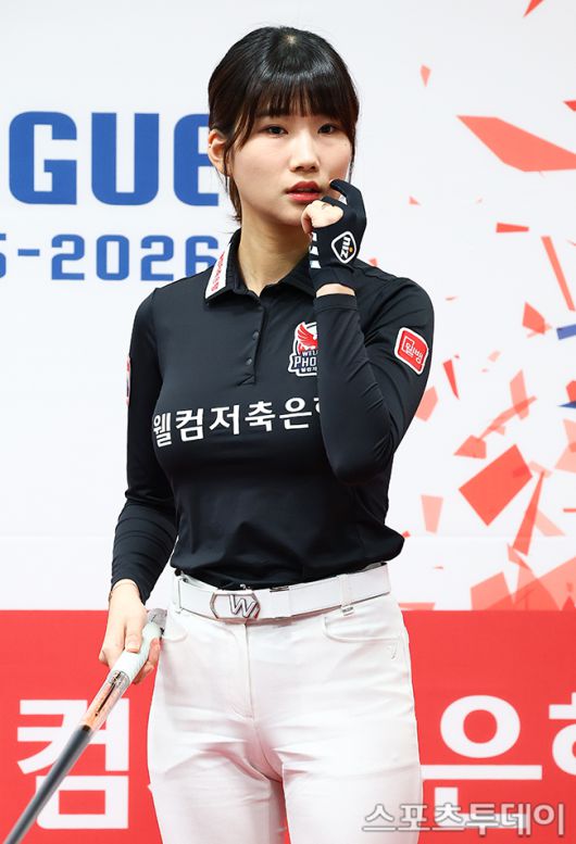 [고양(경기)=스포츠투데이 팽현준 기자] 7일 경기도 킨텍스 PBA스타디움에서 열린 웰컴저축은행 PBA 팀리그 2025-2026 5라운드 NH농협카드와 웰컴저축은행의 경기, 여자복식에 출전한 웰컴저축은행 용현지가 코스를 고민하고 있다. 2026.01.07. [스포츠투데이 팽현준 기자 sports@stoo.com]