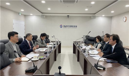 경기도 차세대융합기술연구원 경영본부장과 양산시의원을 역임한 박대조 대통령 직속 국가AI전략위원회 자문위원이 지난 5일 경남도 출연기관인 경남투자경제진흥원을 방문해 오재호 원장과 AI 활용방안에 대해 머리를 맞댔다.