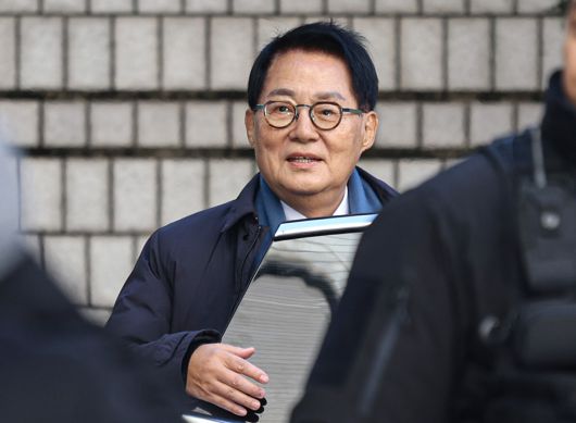 2020년 서해에서 발생한 공무원 피격 사건을 은폐하려 한 혐의로 재판에 넘겨진 박지원 전 국가정보원장이 지난달 26일 서울 서초구 서울중앙지법에서 열린 1심 선고공판에 출석하고 있다. 연합뉴스 |