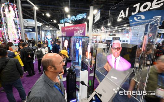 세계 최대 가전·정보기술(IT) 전시회 'CES 2026'이 개막한 6일(현지시간) 미국 네바다주 라스베이거스 컨벤션센터 센트럴홀에 마련된 하이퍼VSN부스에서 참관객이 홀로그램으로 구현된 AI휴먼과 대화하고 있다. 라스베이거스=이동근기자 foto@etnews.com [Copyright © 전자신문. 무단전재-재배포금지]