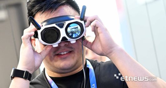 세계 최대 가전·정보기술(IT) 전시회 'CES 2026'이 개막한 6일(현지시간) 미국 네바다주 라스베이거스 컨벤션센터 센트럴홀에 마련된 안티그래비티 부스에서 참관객이 'A1' 드론과 연동되는 비전 고글을 체험하고 있다. 라스베이거스=이동근기자 foto@etnews.com [Copyright © 전자신문. 무단전재-재배포금지]