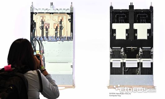 세계 최대 가전·정보기술(IT) 전시회 'CES 2026'이 개막한 6일(현지시간) 미국 네바다주 라스베이거스 퐁텐블로 호텔에서 열린 엔비디아 전시관에서 참관객이 베라 루빈 트레이를 살펴보고 있다. 라스베이거스=이동근기자 foto@etnews.com [Copyright © 전자신문. 무단전재-재배포금지]