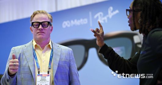 세계 최대 가전·정보기술(IT) 전시회 'CES 2026'이 개막한 6일(현지시간) 미국 네바다주 윈 호텔에 마련된 메타 단독전시관에서 참관객이 AI안경 '메타-레이벤 디스플레이'를 체험하고 있다. 라스베이거스=이동근기자 foto@etnews.com [Copyright © 전자신문. 무단전재-재배포금지]