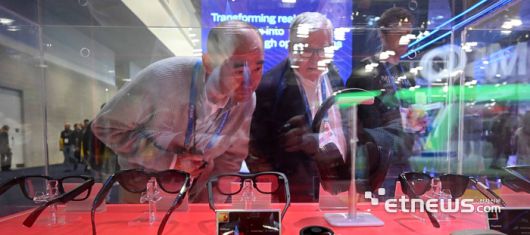 세계 최대 가전·정보기술(IT) 전시회 'CES 2026'이 개막한 6일(현지시간) 미국 네바다주 라스베이거스 컨벤션센터 웨스트홀에 마련된 퀄컴 부스에서 참관객이 스냅드래곤 칩이 내장된 AI글라스를 살펴보고 있다. 라스베이거스=이동근기자 foto@etnews.com [Copyright © 전자신문. 무단전재-재배포금지]