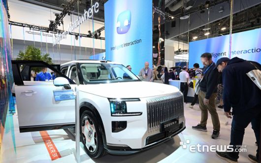 세계 최대 가전·정보기술(IT) 전시회 'CES 2026'이 개막한 6일(현지시간) 미국 네바다주 라스베이거스 컨벤션센터 웨스트홀에 마련된 지리자동차 부스에서 참관객이 대형SUV '지커 9X'를 살펴보고 있다. 라스베이거스=이동근기자 foto@etnews.com [Copyright © 전자신문. 무단전재-재배포금지]
