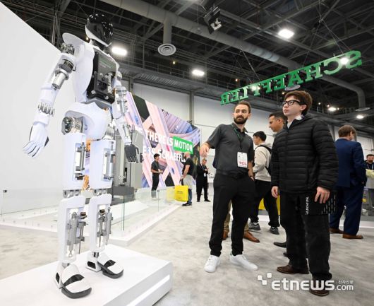 세계 최대 가전·정보기술(IT) 전시회 'CES 2026'이 개막한 6일(현지시간) 미국 네바다주 라스베이거스 컨벤션센터 웨스트홀에 마련된 셰플러 부스에서 참관객이 휴머노이드 로봇 'S³AM'을 살펴보고 있다. 라스베이거스=이동근기자 foto@etnews.com [Copyright © 전자신문. 무단전재-재배포금지]