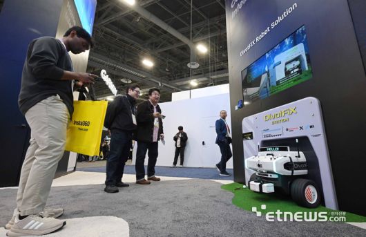 세계 최대 가전·정보기술(IT) 전시회 'CES 2026'이 개막한 6일(현지시간) 미국 네바다주 라스베이거스 컨벤션센터 웨스트홀에 마련된 HL그룹 부스에서 참관객이 HL디앤아이한라의 골프장 디봇 보수 로봇 '디봇픽스'를 살펴보고 있다. 라스베이거스=이동근기자 foto@etnews.com [Copyright © 전자신문. 무단전재-재배포금지]