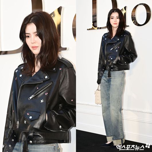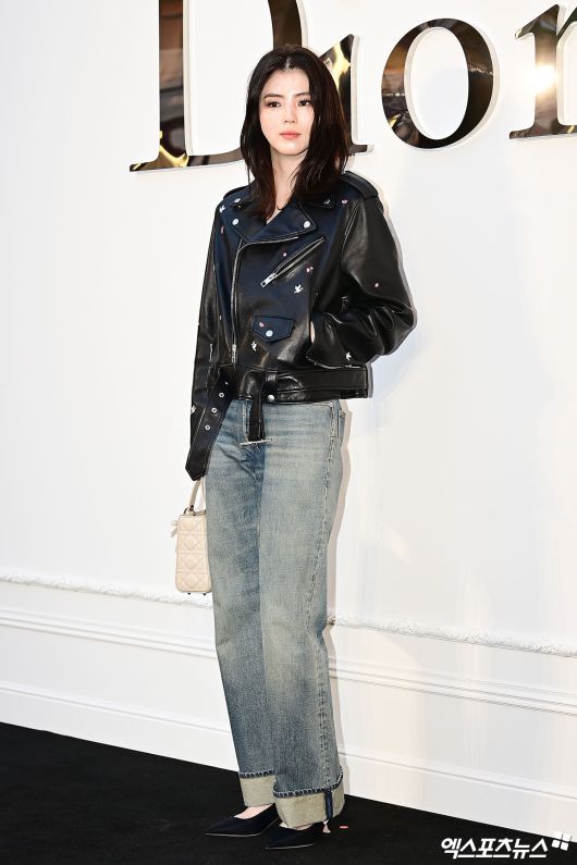 이날 행사에 참석한 한소희는 세련된 럭셔리 펑크 스타일을 선보였다. 오버사이즈 핏의 블랙 레더 바이커 자켓을 선택해 편안하면서도 쿨한 실루엣을 강조했다. 거칠고 반항적인 무드의 자켓 위에 분홍색 꽃과 흰색 새 모양 자수가 놓인 이 아이템은 한소희가 가진 도시적이고 신비로운 이미지와 완벽한 시너지를 냈다.