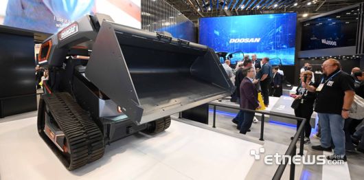 세계 최대 가전·정보기술(IT) 전시회 'CES 2026'이 개막한 6일(현지시간) 미국 네바다주 라스베이거스 LVCC 웨스트홀에 마련된 두산그룹에서 참관객이 두산밥캣의 미래형 전동 건설장비 '로그X3'를 살펴보고 있다. 라스베이거스=이동근기자 foto@etnews.com [Copyright © 전자신문. 무단전재-재배포금지]