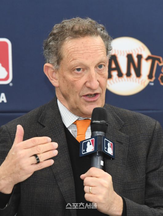 미국 메이저리그 샌프란시스코 자이언츠의 래리 베어 CEO가 7일 경기도 이천 LG챔피언스파크에서 진행된 미디어데이 행사에서 인사말을 하고 있다. 이천 | 박진업 기자 upandup@sportsseoul.com |