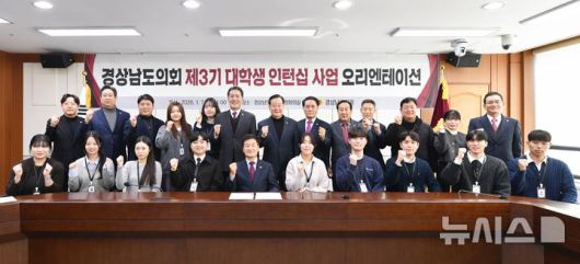 [창원=뉴시스]홍정명 기자 = 경상남도의회는 7일 오후 도의회 의정회의실에서 제3기 대학생 인턴십 사업 추진을 위해 의회-대학-인턴(학생) 간 3자 협약을 체결하고 오리엔테이션을 진행했다고 밝혔다.
