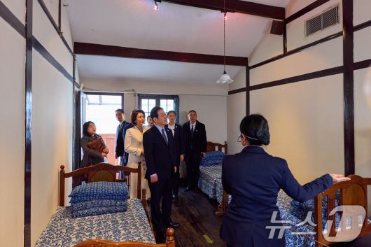 (상하이(중국)=뉴스1) 허경 기자 = 이재명 대통령과 김혜경 여사가 7일 오후 상하이 임시정부청사 기념관을 살펴보고 있다. (공동취재) 2026.1.7/뉴스1