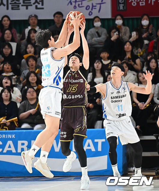 [OSEN=창원, 이석우 기자] 7일 창원 체육관에서 2025-2026 LG전자 프로농구 창원 LG와 서울 삼성의 경기가 열렸다. 삼성전 6연승을 질주하고 있는 LG가 이번 맞대결에서도 상승세를 이어갈 수 있을지 관심이 모아진다. 서울 삼성 이규태와 창원 LG 정인덕이 리바운드볼을 다투고 있다. 2026.01.07 / foto0307@osen.co.kr