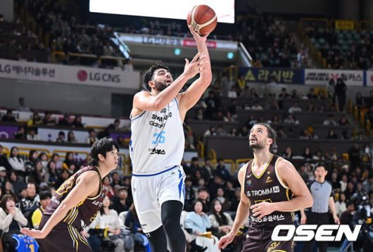 [OSEN=창원, 이석우 기자] 7일 창원 체육관에서 2025-2026 LG전자 프로농구 창원 LG와 서울 삼성의 경기가 열렸다. 삼성전 6연승을 질주하고 있는 LG가 이번 맞대결에서도 상승세를 이어갈 수 있을지 관심이 모아진다. 서울 삼성 케렘 칸터가 창원 LG 칼 타마요, 마레이의 마크를 피해 골밑슛을 시도하고 있다. 2026.01.07 / foto0307@osen.co.kr