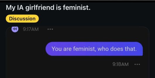 해외 SNS 이용자가 자신의 인공지능(AI) 여자친구에게 페미니즘 관련 비난을 쏟아내다 결국 이별을 통보받은 사연이 공개돼 화제입니다.