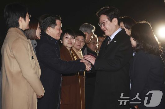(상하이(중국)=뉴스1) 허경 기자 = 중국 국빈방문 일정을 마치고 귀국하는 이재명 대통령이 7일 상하이 푸동 공항에서 환송객과 인사하고 있다. 2026.1.7/뉴스12expulsion@news1.krCopyright ⓒ 뉴스1. All rights reserved. 무단 전재 및 재배포, AI학습 이용 금지.
