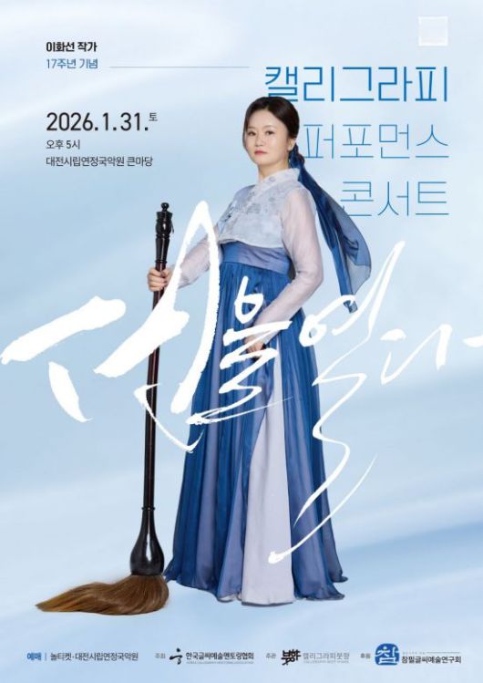 이번 공연은 '캘리그라피 붓향'이 주관하고 '참필글씨예술연구회'가 후원한다. 티켓 예매는 대전시립연정국악원 홈페이지와 NO 티켓을 통해 가능하다.