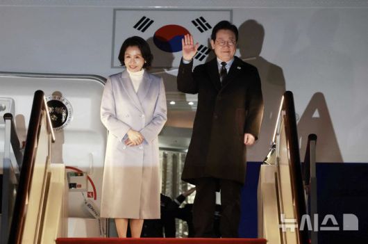 [상하이=뉴시스] 최동준 기자 = 중국 국빈 방문 일정을 마친 이재명 대통령과 김혜경 여사가 7일(현지 시간) 상하이 푸동 국제공항에서 공군 1호기에 올라 인사하고 있다. 2026.01.07. photocdj@newsis.com |