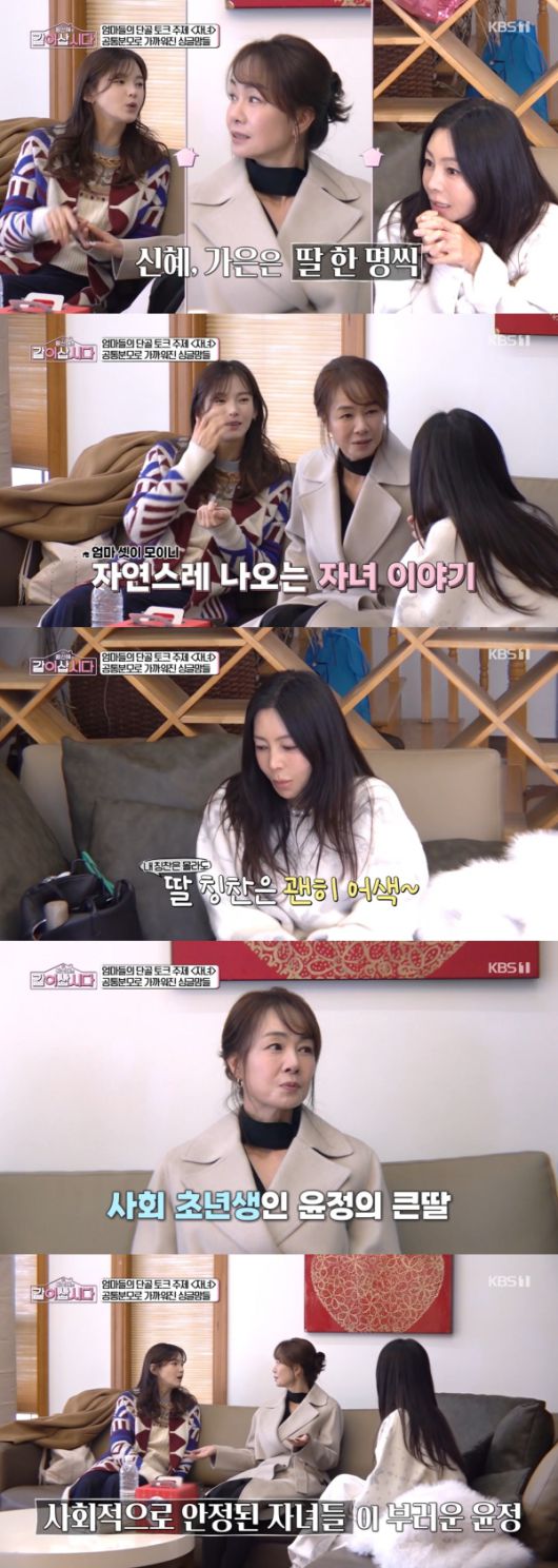 정가은은 장윤정에게 "언니는 자녀가 몇 명이에요?"라고 물었고, 장윤정은 "저는 둘이다"라고 답했다. 정가은과 황신혜는 각각 딸 한 명을 두고 있다고 말했다.