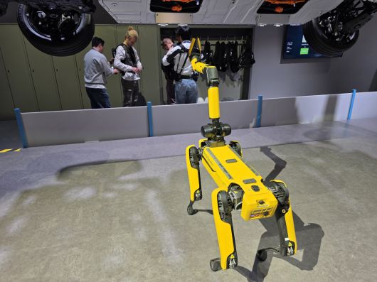 그러자 보스턴다이내믹스의 4족 보행 로봇 ‘스폿’이 충전소에서 나와 이들 부자가 조립한 볼트의 이음새 사진을 촬영했다. 품질 검사 인공지능(AI) ‘AI 키퍼’에게 보낼 사진이다.