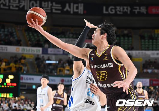 [OSEN=창원, 이석우 기자] 7일 창원 체육관에서 2025-2026 LG전자 프로농구 창원 LG와 서울 삼성의 경기가 열렸다. 삼성전 6연승을 질주하고 있는 LG가 이번 맞대결에서도 상승세를 이어갈 수 있을지 관심이 모아진다. 창원 LG 칼 타마요가 서울 삼성 윤성원의 마크를 피해 골밑슛을 시도하고 있다. 2026.01.07 / foto0307@osen.co.kr
