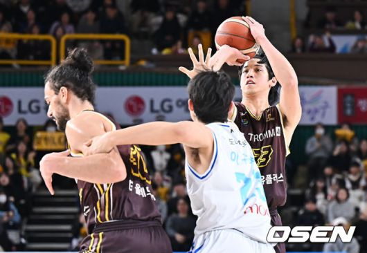 [OSEN=창원, 이석우 기자] 7일 창원 체육관에서 2025-2026 LG전자 프로농구 창원 LG와 서울 삼성의 경기가 열렸다. 삼성전 6연승을 질주하고 있는 LG가 이번 맞대결에서도 상승세를 이어갈 수 있을지 관심이 모아진다. 창원 LG 칼 타마요가 서울 삼성 이규태의 마크를 피해 3점슛을 시도하고 있다. 2026.01.07 / foto0307@osen.co.kr