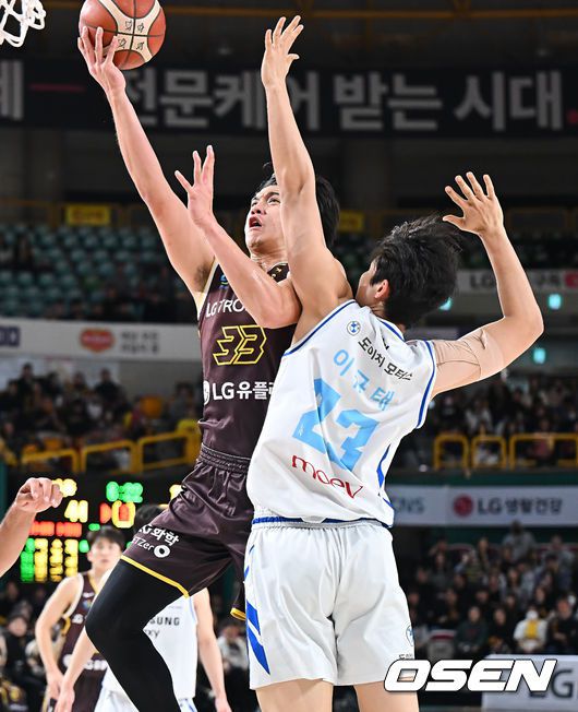 [OSEN=창원, 이석우 기자] 7일 창원 체육관에서 2025-2026 LG전자 프로농구 창원 LG와 서울 삼성의 경기가 열렸다. 삼성전 6연승을 질주하고 있는 LG가 이번 맞대결에서도 상승세를 이어갈 수 있을지 관심이 모아진다. 창원 LG 칼 타마요가 서울 삼성 이규태의 마크를 피해 골밑슛을 시도하고 있다. 2026.01.07 / foto0307@osen.co.kr