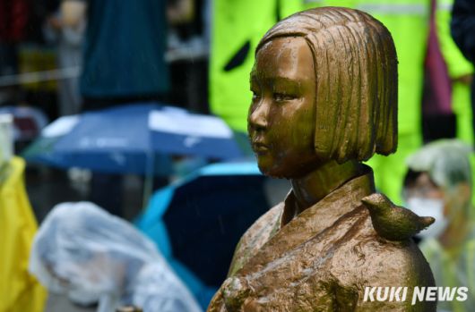 서울 종로구 옛 일본대사관 앞에 세워져 있는 평화의 소녀상. 박효상 기자 |