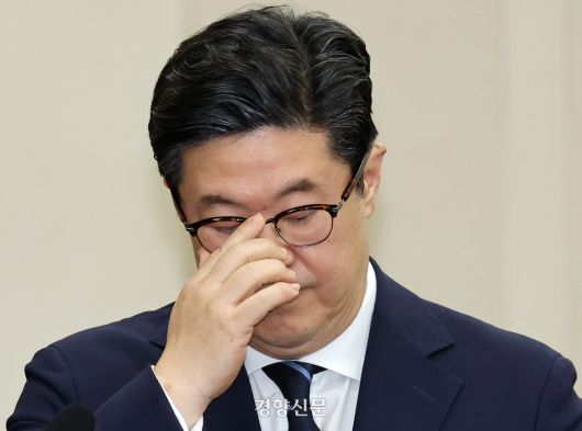 김병주 MBK파트너스 회장이 지난해 10월 국회에서 열린 정무위원회 국정감사에서 증인으로 출석해 무거운 표정을 짓고 있다. 박민규 선임기자 |