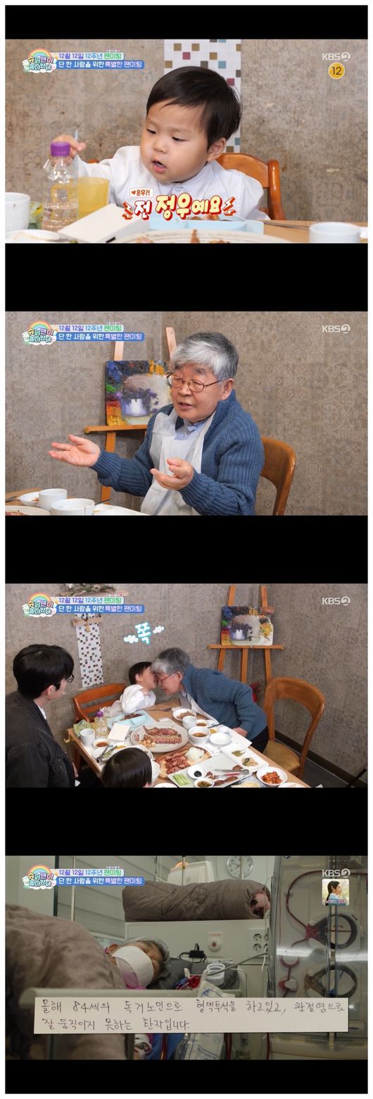 김준호 부자는 어르신을 위해 단독 팬 미팅을 가졌다. 어르신은 잘 먹는 정우만 봐도 흐뭇해했다. 김준호는 “일상이나 소소한 걸 보여드리는 건데, 힘을 얻으신다고 해서 (오히려 감사하다)”라며 전했고, 어르신은 “정우랑, 은우 아빠는 정말 천국에서 사는 것 같을 거다”라며 흐뭇한 미소를 지었다./osen_jin0310@osen.co.kr