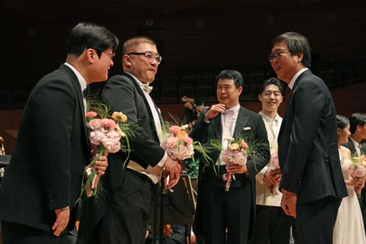 [서울=뉴시스] 최휘영 문화체육관광부 장관이 7일 서울 서초구 예술의전당 음악당 콘서트홀에서 열린 2026 신년음악회를 마치고 출연진을 격려하고 있다. (사진=문화체육관광부 제공). 2026.01.07. photo@newsis.com *재판매 및 DB 금지