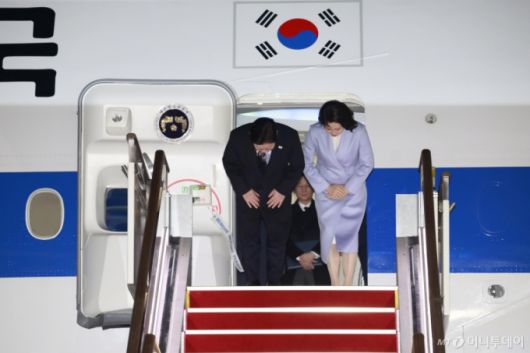 이 대통령 등을 태운 공군 1호기는 이날 밤 경기 성남 서울공항을 통해 입국했다. 이날 공항에는 강훈식 비서실장, 정청래 더불어민주당 대표, 윤호중 행정안전부 장관, 박윤주 외교부 1차관 등이 나와 이 대통령 부부를 맞이했다.