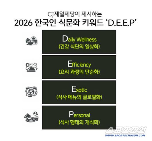 CJ제일제당은 식문화 키워드 '딥(D.E.E.P)'에 집중해 올해 '일상건강·효율·글로벌·개인'에 중점을 둔 제품군 확대에 나선다는 계획이다.