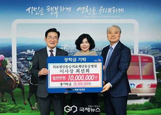 영천시는 1월 7일 최선희 의료법인동승의료재단 동승병원 이사장이 영천시장학회에 장학금 1000만 원을 기탁했다고 밝혔다.