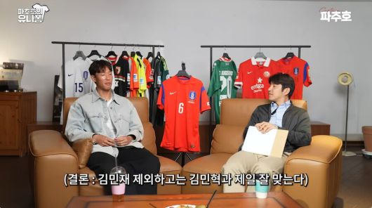 "민혁이는 엄청 많이 뛴다. 스피드는 느리지만 활동량이 왕성하고 볼을 정말 잘 찬다. 후방에서 연결고리 노릇을 빼어나게 수행해내는 수비수"라며 김민재를 제외하고 프로 15년 커리어 통틀어 자신과 가장 잘 맞았던 중앙 수비 파트너로 김민혁을 입에 올렸다.