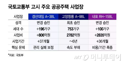 국토부 관계자는 "개별사업별로 부지조성이 늦어진 사유가 있어 불가피하게 사업기간이 증가했고, 건설공사비 상승에 따른 사업비 증가가 발생한 것"이라고 설명했다.