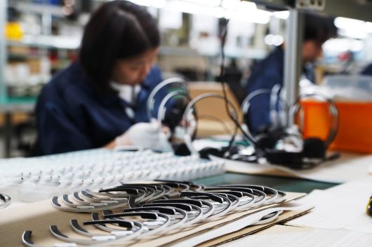 인천광역시 계양구에 위치한 한 공장을 찾았다. ‘공장’이라는 단어와 어울리지 않는 고요한 정적이 흐르는 곳이었다. 7~8명의 작업자가 한곳에 모여 앉아 머리띠처럼 보이는 물건을 유심히 들여다 보고 있었다. 머리·이마에 착용하는 숙면 유도기기 슬리피솔을 생산하는 현장이다.