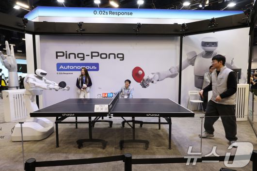 세계 최대 IT(정보기술)·가전 전시회 'CES 2026' 개막 일인 6일(현지시간) 미국 네바다주 라스베이거스 컨벤션센터(LVCC)에서 샤르파 로봇이 인간과 탁구 대결을 펼치고 있다. 2026.1.7/뉴스1 ⓒ News1 황기선 기자 |