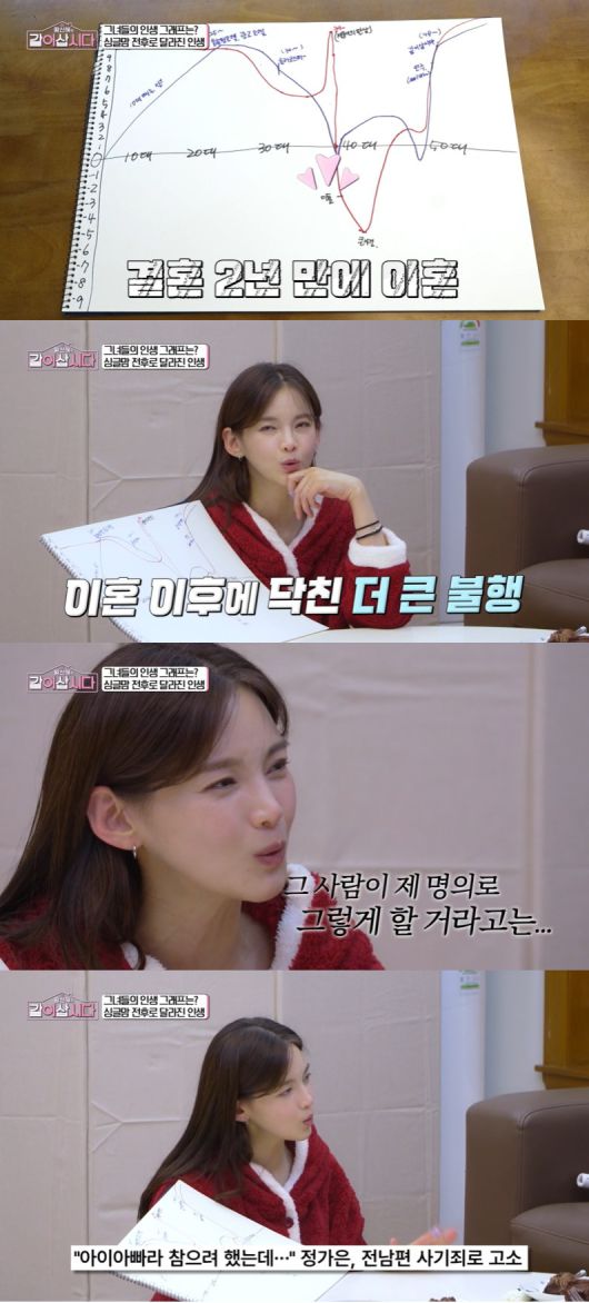 이날 정가은은 자신의 인생그래프를 그리며 결혼과 이혼에 대해 언급했다.